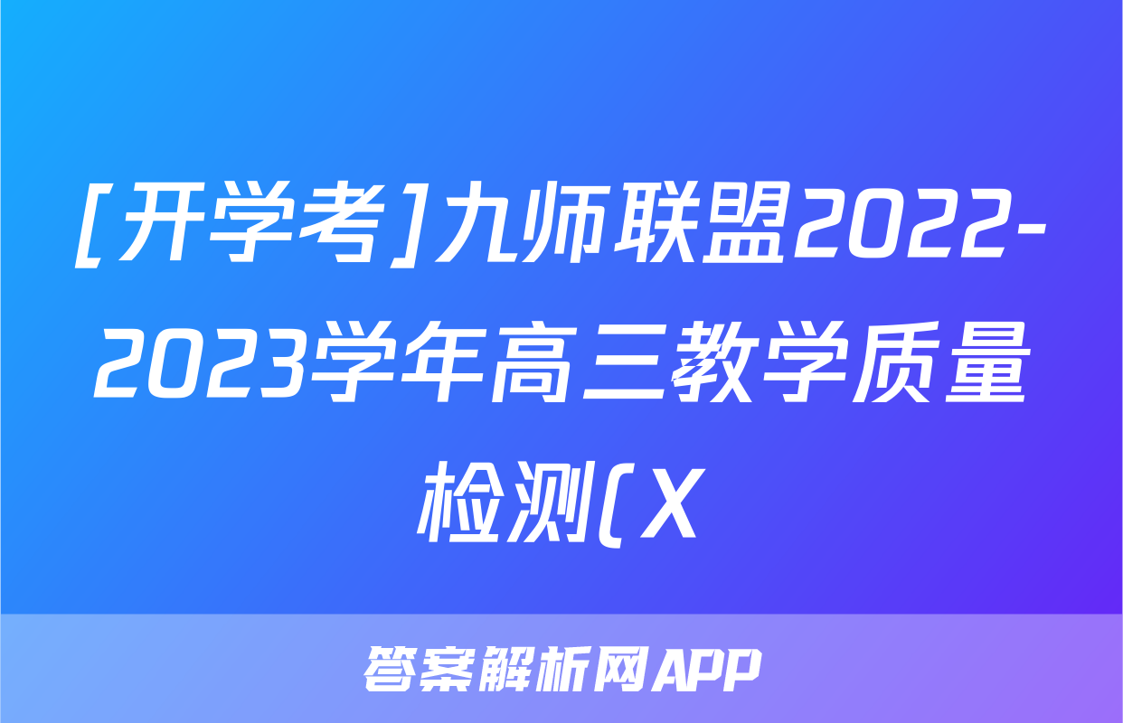 [开学考]九师联盟2022-2023学年高三教学质量检测(X)语文试卷答案正在持续更新,目前2026天舟高考答案网为大家整理了相关试题及答案,供大家查缺补漏,高效提升成绩。