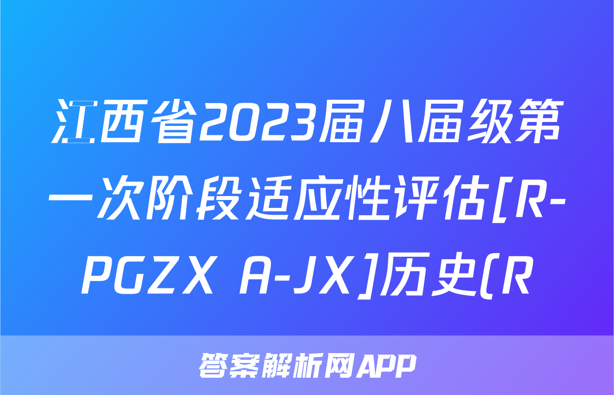 江西省2023届八届级第一次阶段适应性评估[R-PGZX A-JX]历史(R)答案正在持续更新,目前2026天舟高考答案网为大家整理了相关试题及答案,供大家查缺补漏,高效提升成绩。