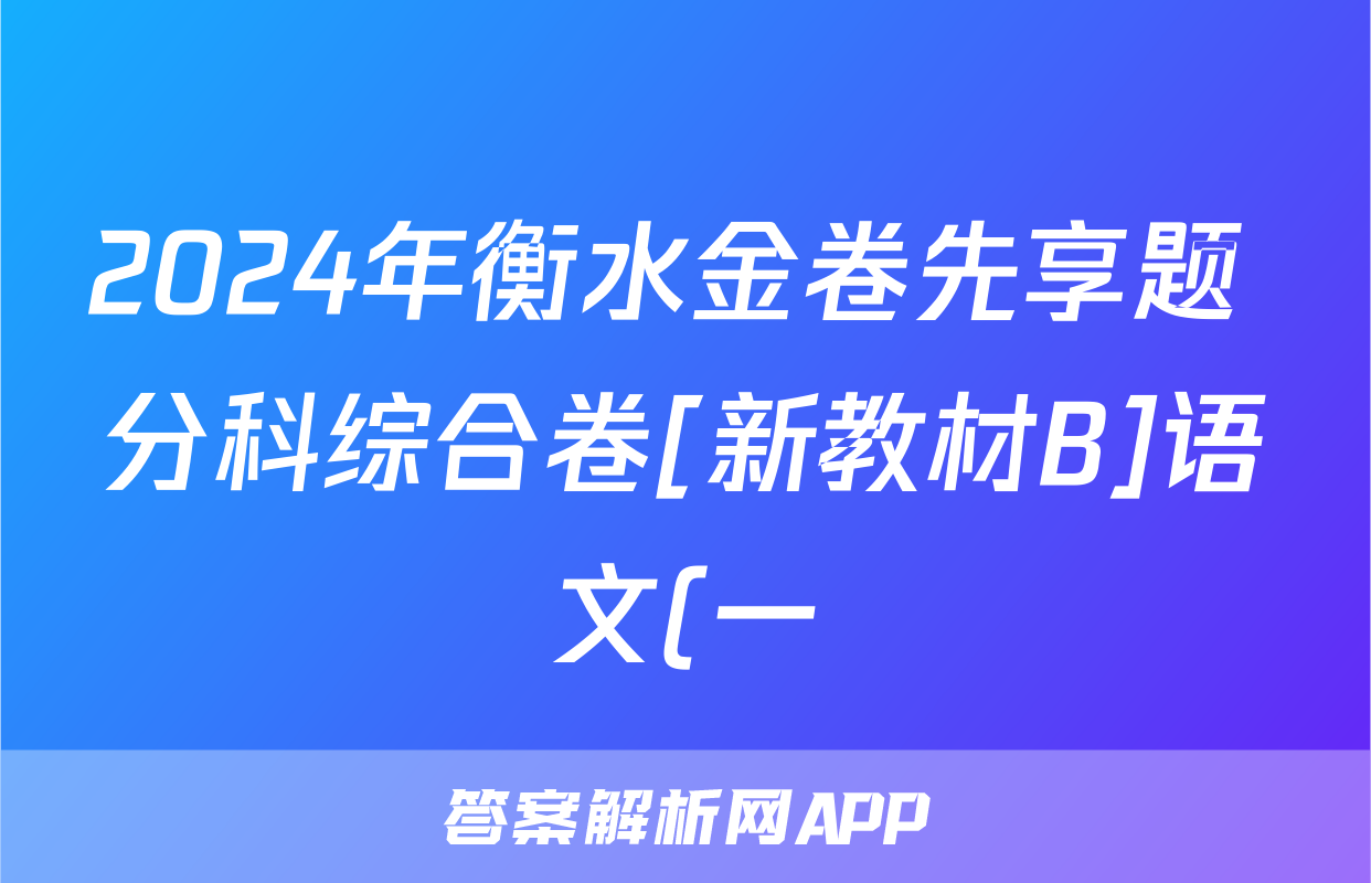 2024年衡水金卷先享题 分科综合卷[新教材B]语文(一)1答案正在持续更新,目前2026天舟高考答案网为大家整理了相关试题及答案,供大家查缺补漏,高效提升成绩。