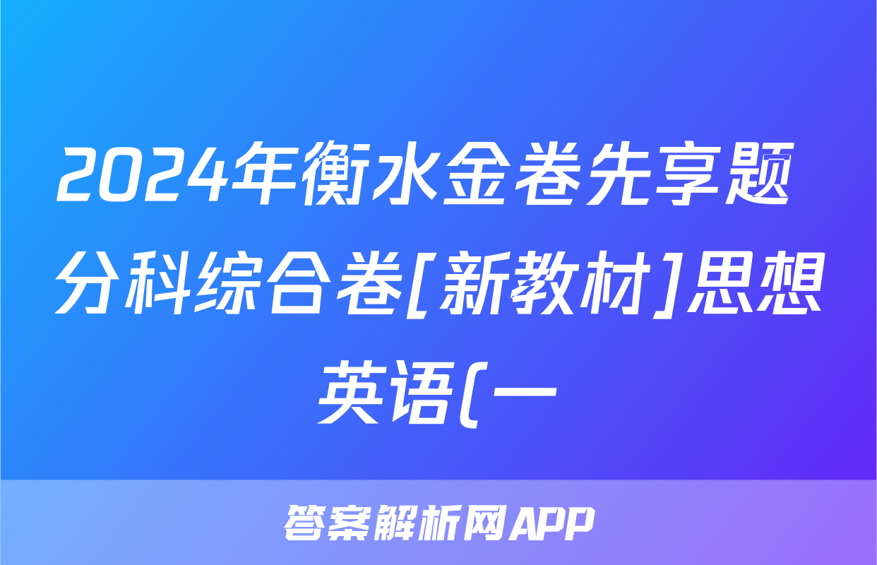 2024年衡水金卷先享题 分科综合卷[新教材]思想英语(一)1答案正在持续更新,目前2026天舟高考答案网为大家整理了相关试题及答案,供大家查缺补漏,高效提升成绩。