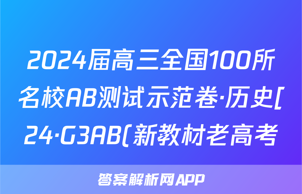 2024届高三全国100所名校AB测试示范卷·历史[24·G3AB(新教材老高考)·历史-R-必考-GX]三试题正在持续更新,目前2026天舟高考答案网为大家整理了相关试题及答案,供大家查缺补漏,高效提升成绩。