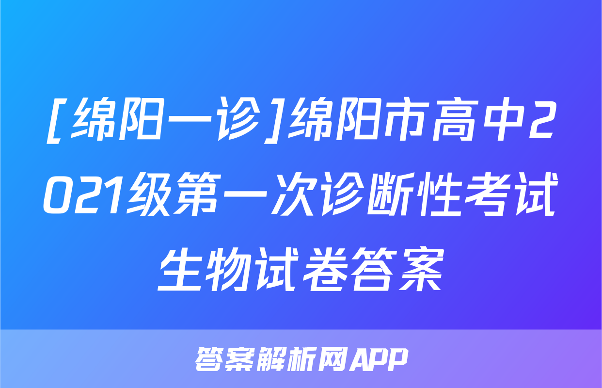 [绵阳一诊]绵阳市高中2021级第一次诊断性考试生物试卷答案正在持续更新,目前2026天舟高考答案网为大家整理了相关试题及答案,供大家查缺补漏,高效提升成绩。