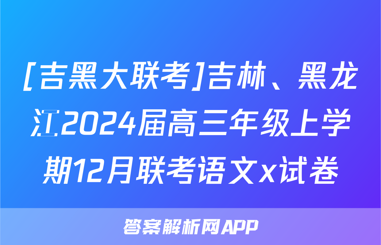 [吉黑大联考]吉林、黑龙江2024届高三年级上学期12月联考语文x试卷正在持续更新,目前2026天舟高考答案网为大家整理了相关试题及答案,供大家查缺补漏,高效提升成绩。