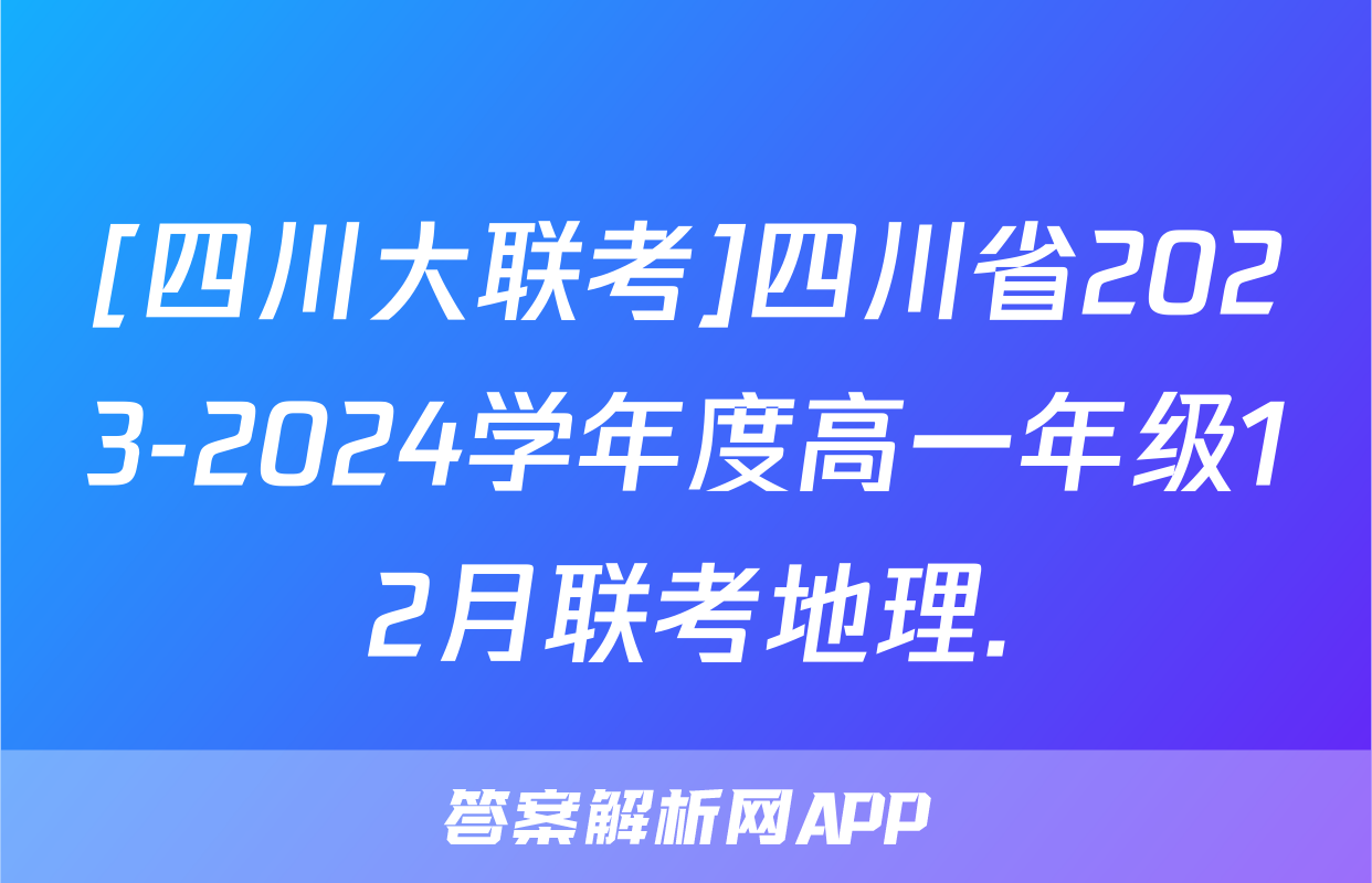 [四川大联考]四川省2023-2024学年度高一年级12月联考地理.正在持续更新,目前2026天舟高考答案网为大家整理了相关试题及答案,供大家查缺补漏,高效提升成绩。