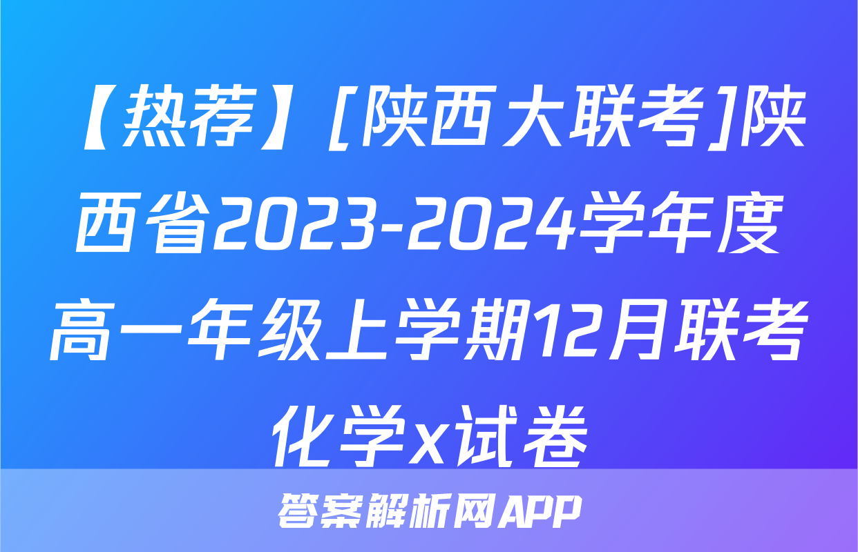 【热荐】[陕西大联考]陕西省2023-2024学年度高一年级上学期12月联考化学x试卷正在持续更新,目前2026天舟高考答案网为大家整理了相关试题及答案,供大家查缺补漏,高效提升成绩。