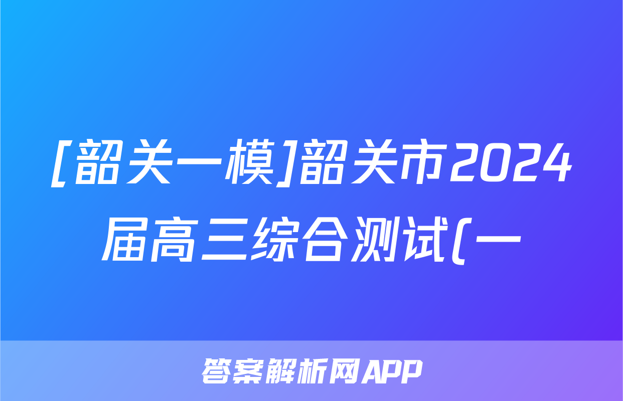 [韶关一模]韶关市2024届高三综合测试(一)(政治)试卷答案正在持续更新,目前2026天舟高考答案网为大家整理了相关试题及答案,供大家查缺补漏,高效提升成绩。