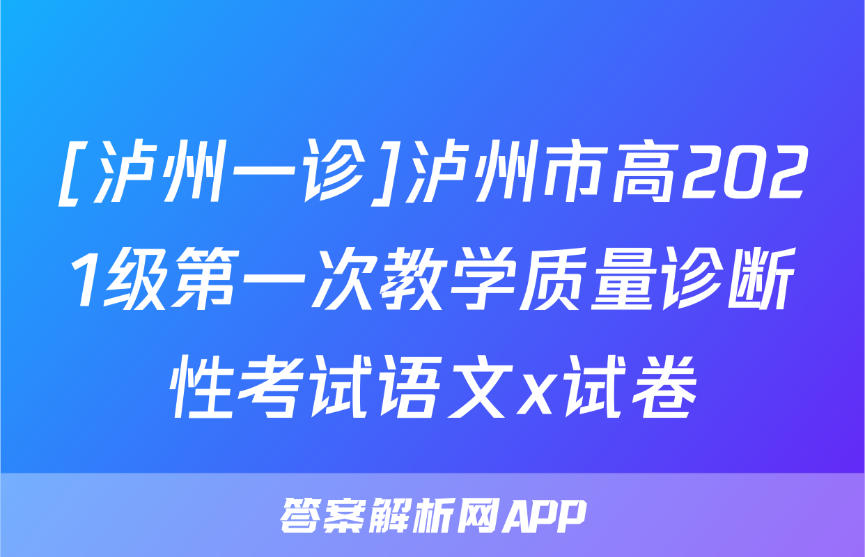[泸州一诊]泸州市高2021级第一次教学质量诊断性考试语文x试卷正在持续更新,目前2026天舟高考答案网为大家整理了相关试题及答案,供大家查缺补漏,高效提升成绩。