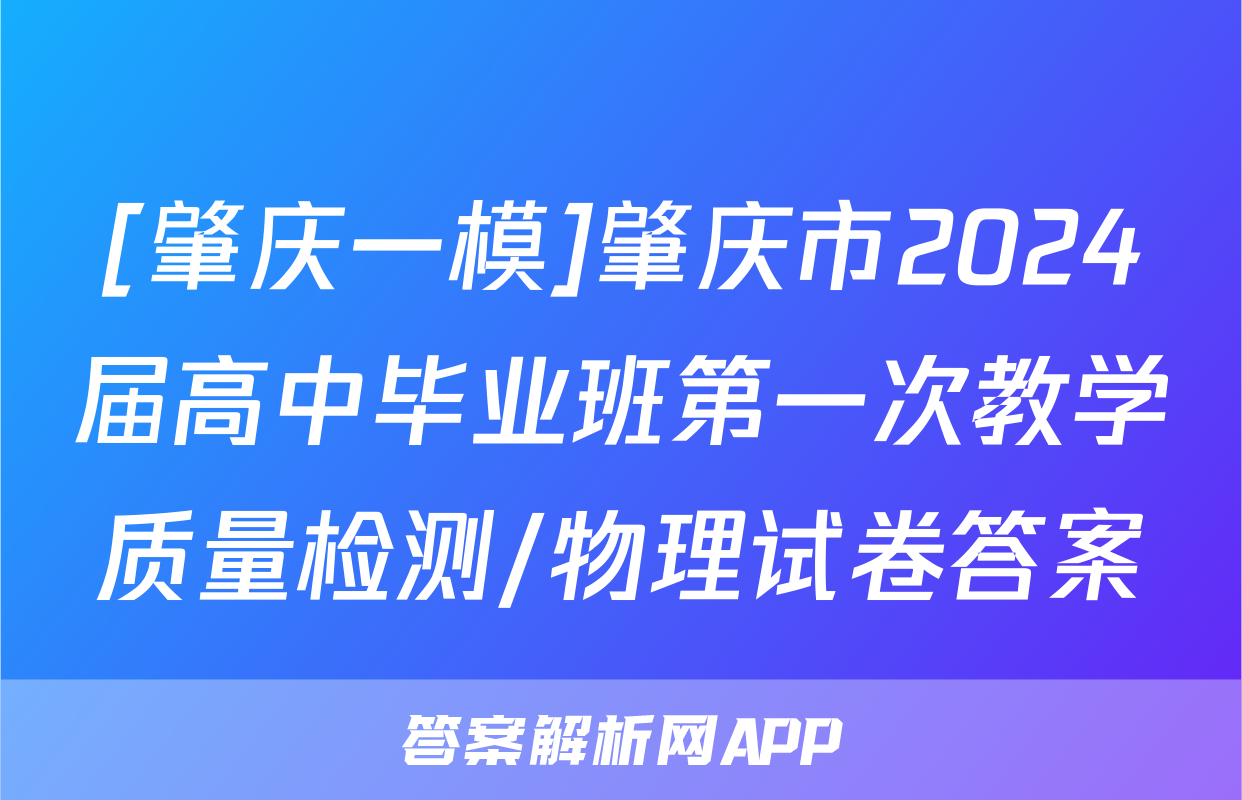 [肇庆一模]肇庆市2024届高中毕业班第一次教学质量检测/物理试卷答案正在持续更新,目前2026天舟高考答案网为大家整理了相关试题及答案,供大家查缺补漏,高效提升成绩。