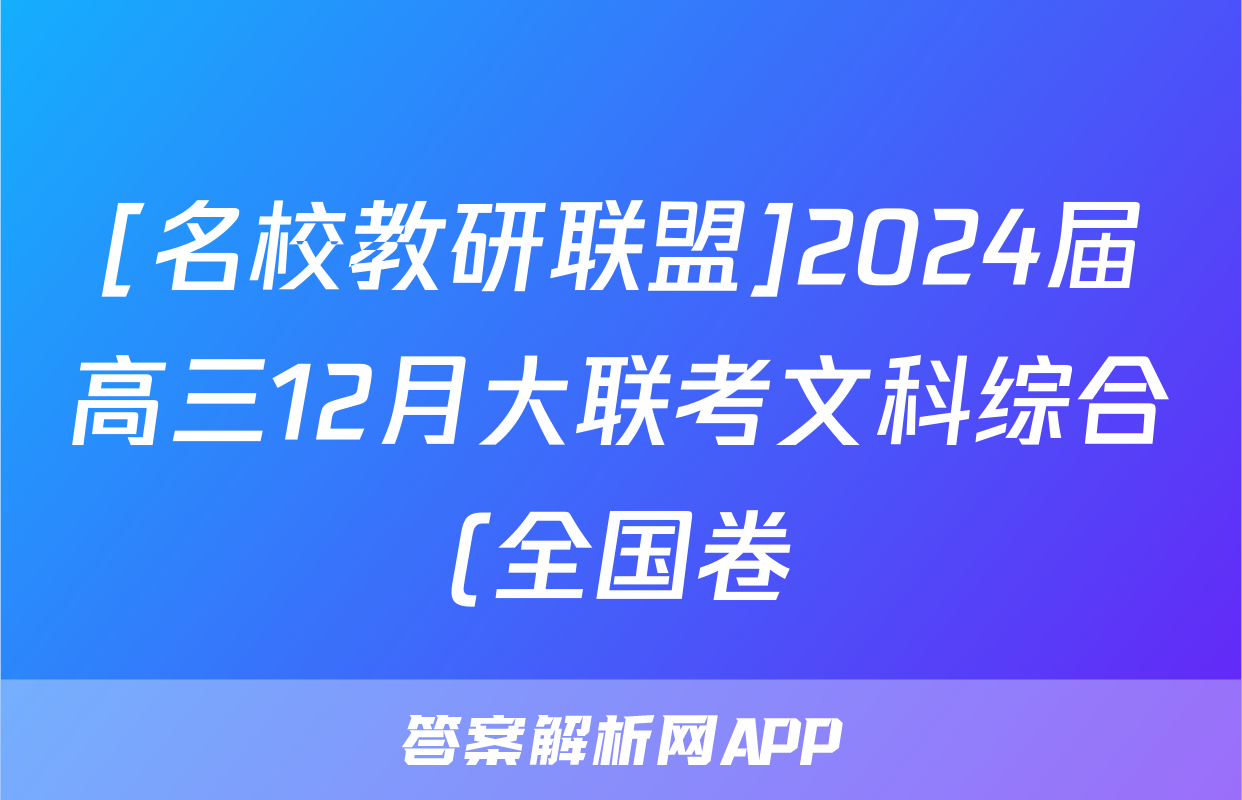 [名校教研联盟]2024届高三12月大联考文科综合(全国卷)试题正在持续更新,目前2026天舟高考答案网为大家整理了相关试题及答案,供大家查缺补漏,高效提升成绩。