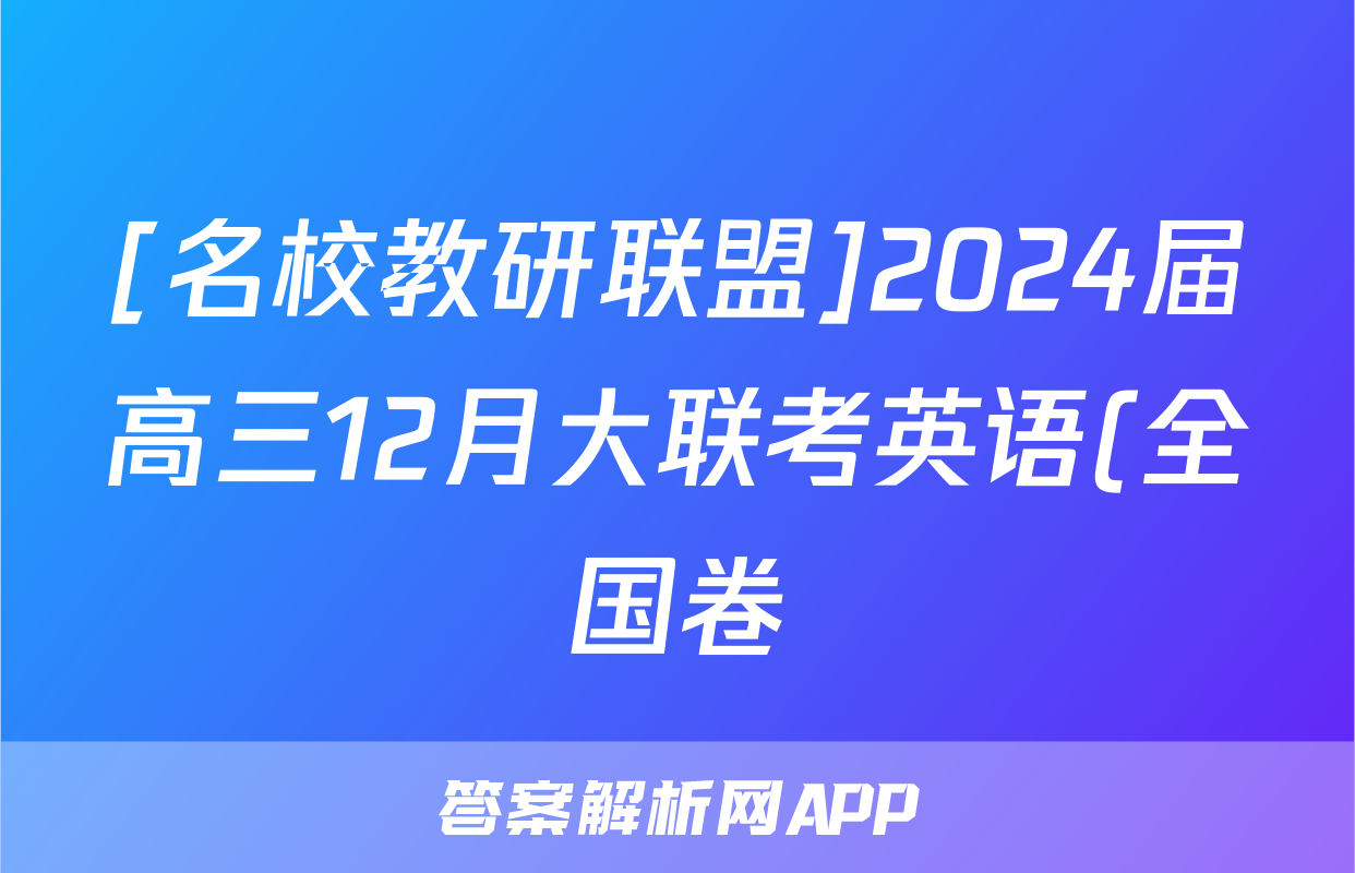 2、名校教研联盟 2024届高三12月大联考英语(全国卷)试题
