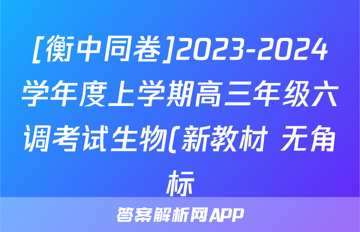 [衡中同卷]2023-2024学年度上学期高三年级六调考试生物(新教材 无角标)答案正在持续更新,目前2026天舟高考答案网为大家整理了相关试题及答案,供大家查缺补漏,高效提升成绩。