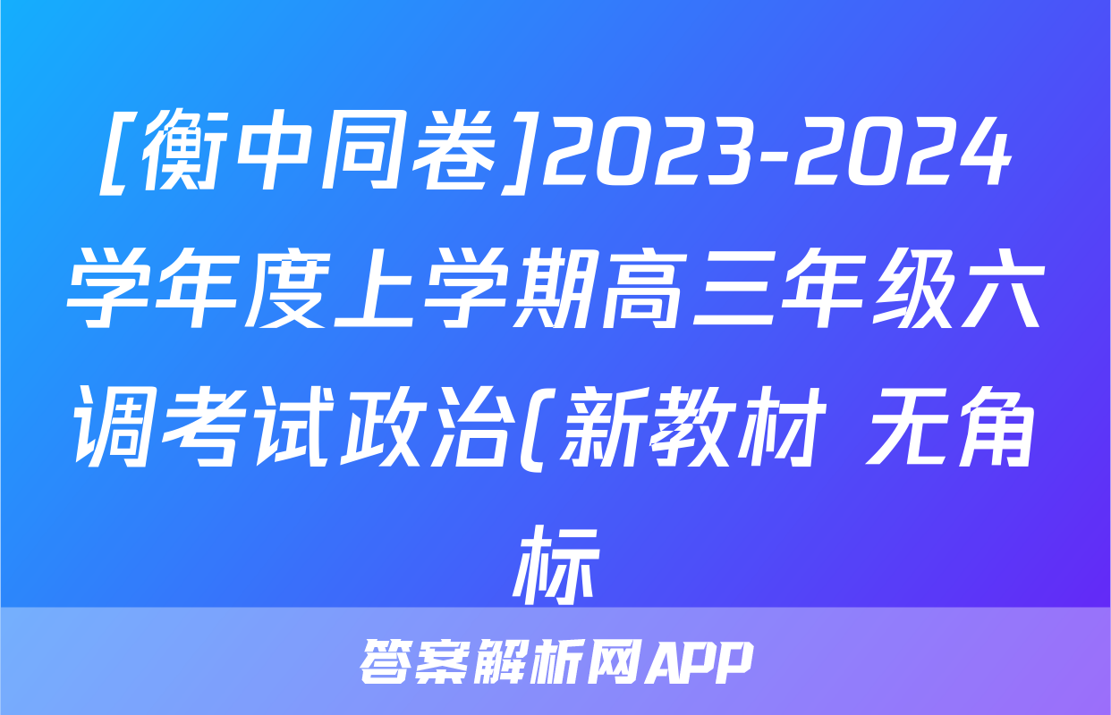 [衡中同卷]2023-2024学年度上学期高三年级六调考试政治(新教材 无角标)答案正在持续更新,目前2026天舟高考答案网为大家整理了相关试题及答案,供大家查缺补漏,高效提升成绩。