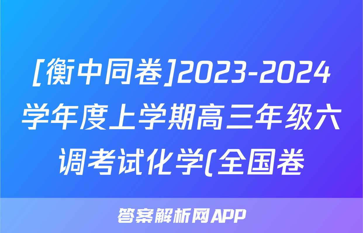 [衡中同卷]2023-2024学年度上学期高三年级六调考试化学(全国卷)答案正在持续更新,目前2026天舟高考答案网为大家整理了相关试题及答案,供大家查缺补漏,高效提升成绩。