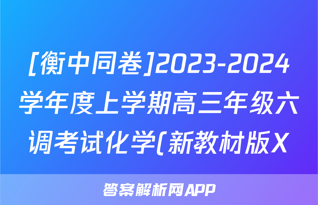 [衡中同卷]2023-2024学年度上学期高三年级六调考试化学(新教材版X)答案正在持续更新,目前2026天舟高考答案网为大家整理了相关试题及答案,供大家查缺补漏,高效提升成绩。