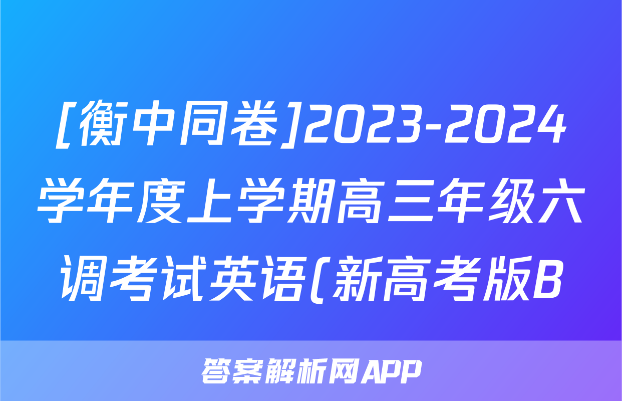 [衡中同卷]2023-2024学年度上学期高三年级六调考试英语(新高考版B)试题正在持续更新,目前2026天舟高考答案网为大家整理了相关试题及答案,供大家查缺补漏,高效提升成绩。