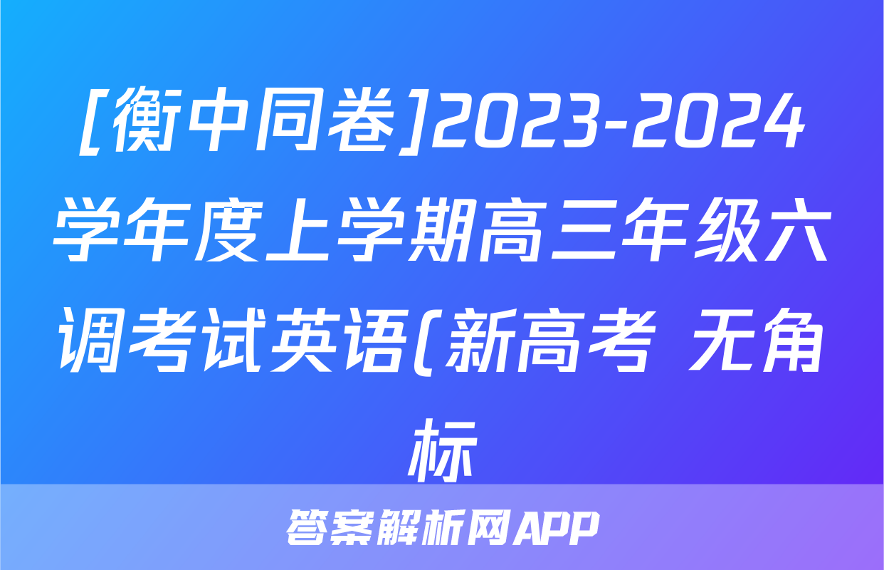 [衡中同卷]2023-2024学年度上学期高三年级六调考试英语(新高考 无角标)试题正在持续更新,目前2026天舟高考答案网为大家整理了相关试题及答案,供大家查缺补漏,高效提升成绩。