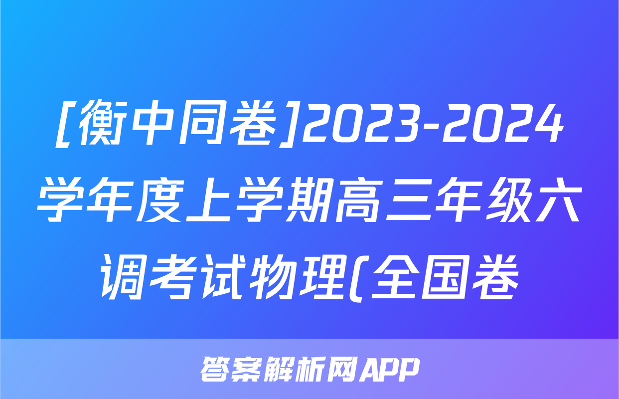 [衡中同卷]2023-2024学年度上学期高三年级六调考试物理(全国卷)试题正在持续更新,目前2026天舟高考答案网为大家整理了相关试题及答案,供大家查缺补漏,高效提升成绩。