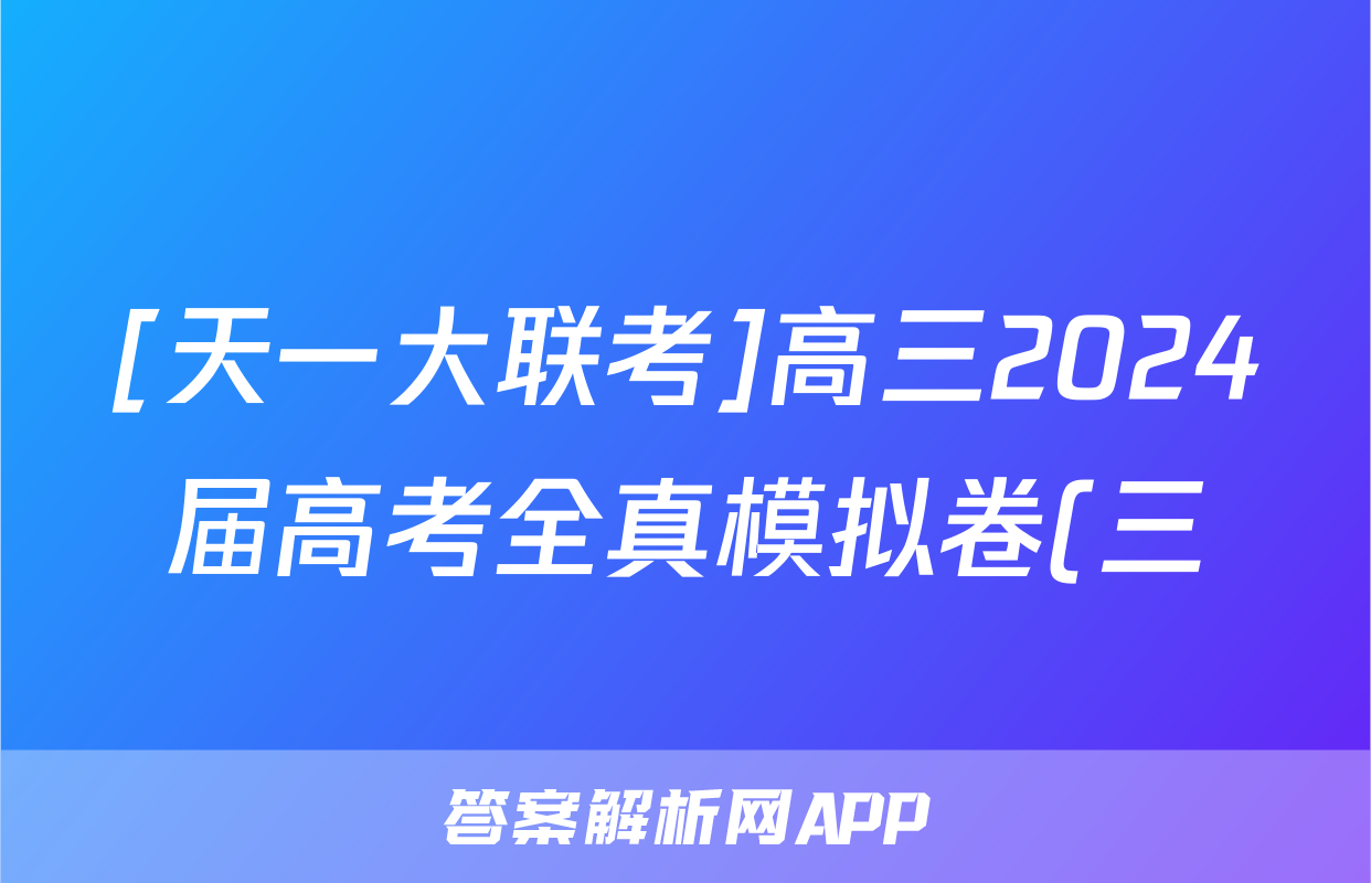 [天一大联考]高三2024届高考全真模拟卷(三)3化学(湖南专版)试题正在持续更新,目前2026天舟高考答案网为大家整理了相关试题及答案,供大家查缺补漏,高效提升成绩。
