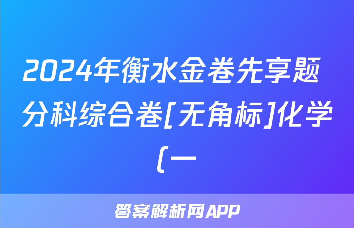 2024年衡水金卷先享题 分科综合卷[无角标]化学(一)1答案