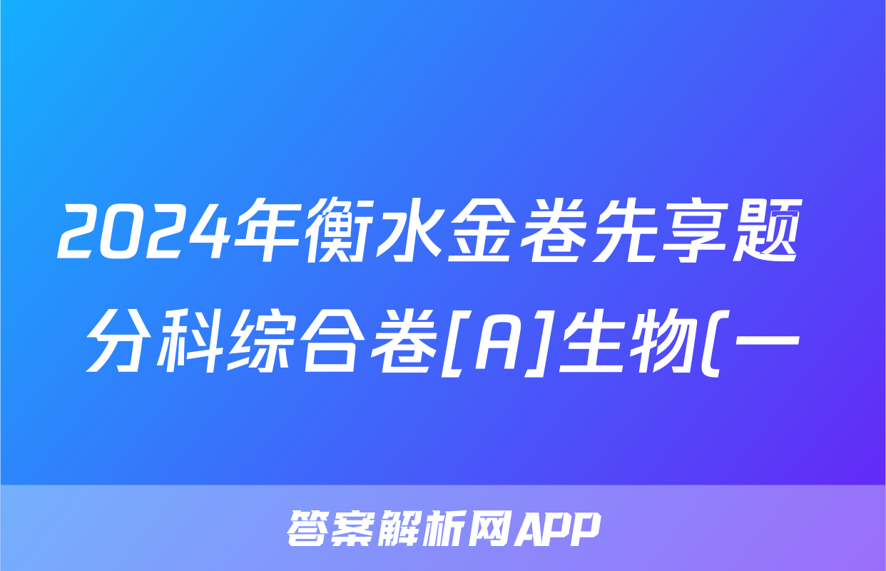 2024年衡水金卷先享题 分科综合卷[A]生物(一)1答案正在持续更新,目前2026天舟高考答案网为大家整理了相关试题及答案,供大家查缺补漏,高效提升成绩。
