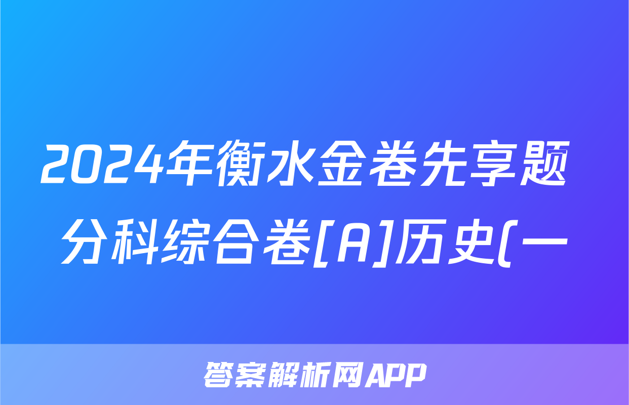 2024年衡水金卷先享题 分科综合卷[A]历史(一)1试题正在持续更新,目前2026天舟高考答案网为大家整理了相关试题及答案,供大家查缺补漏,高效提升成绩。