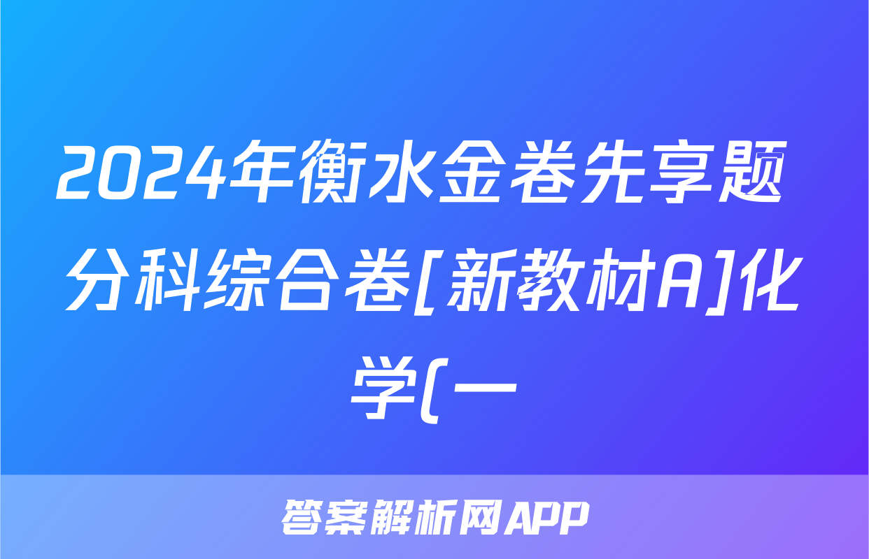 2024年衡水金卷先享题 分科综合卷[新教材A]化学(一)1试题正在持续更新,目前2026天舟高考答案网为大家整理了相关试题及答案,供大家查缺补漏,高效提升成绩。