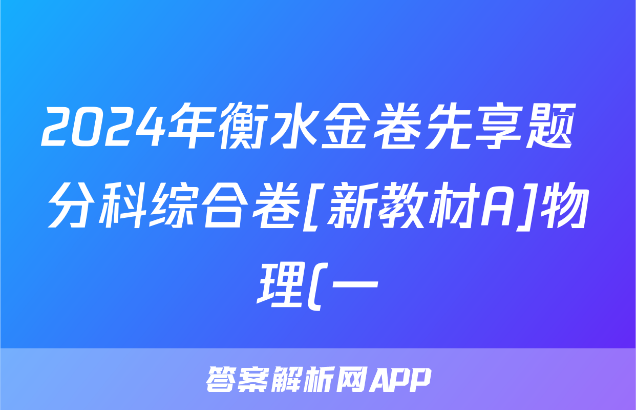 2024年衡水金卷先享题 分科综合卷[新教材A]物理(一)1试题正在持续更新,目前2026天舟高考答案网为大家整理了相关试题及答案,供大家查缺补漏,高效提升成绩。