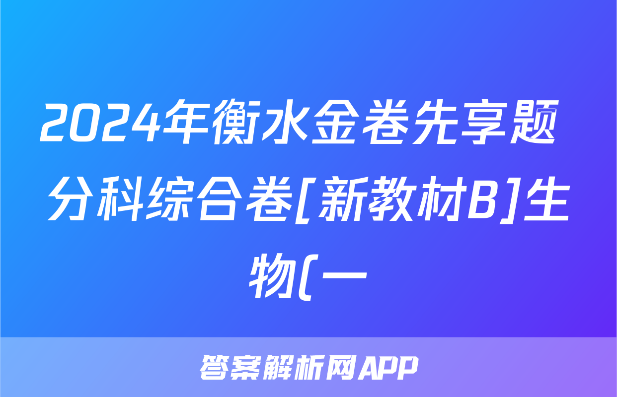 2024年衡水金卷先享题 分科综合卷[新教材B]生物(一)1答案正在持续更新,目前2026天舟高考答案网为大家整理了相关试题及答案,供大家查缺补漏,高效提升成绩。