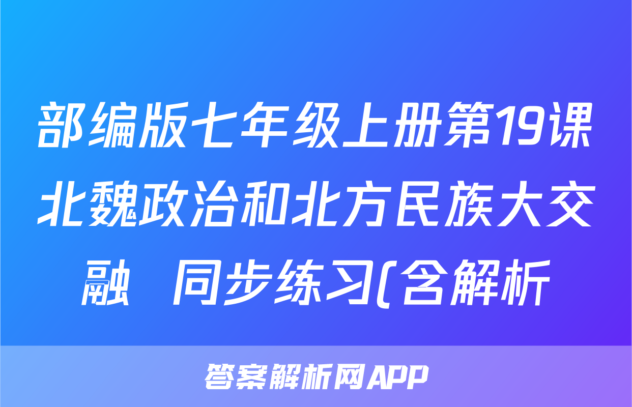 部编版七年级上册第19课北魏政治和北方民族大交融 同步练习(含解析)考试试卷正在持续更新,目前2026天舟高考答案网为大家整理了相关试题及答案,供大家查缺补漏,高效提升成绩。