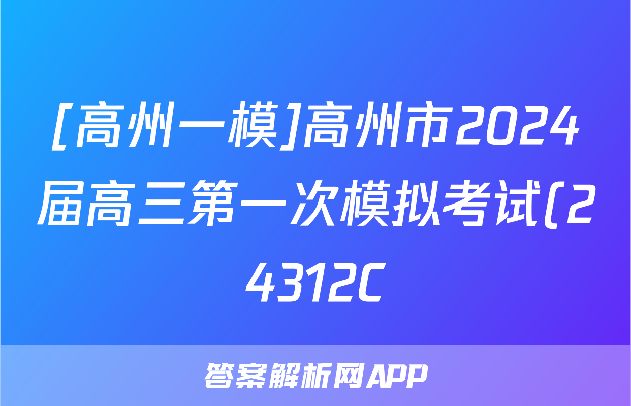[高州一模]高州市2024届高三第一次模拟考试(24312C)数学答案正在持续更新,目前2026天舟高考答案网为大家整理了相关试题及答案,供大家查缺补漏,高效提升成绩。