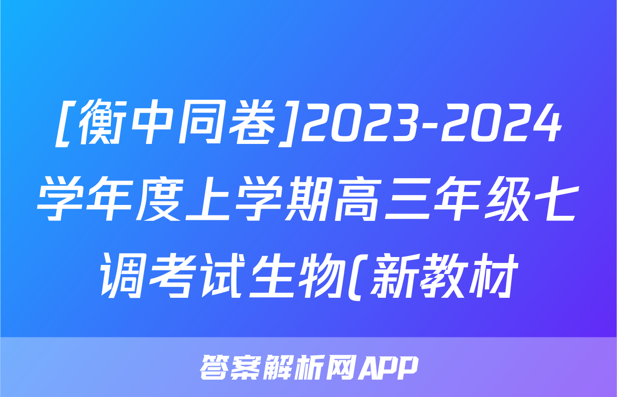 [衡中同卷]2023-2024学年度上学期高三年级七调考试生物(新教材)答案正在持续更新,目前2026天舟高考答案网为大家整理了相关试题及答案,供大家查缺补漏,高效提升成绩。