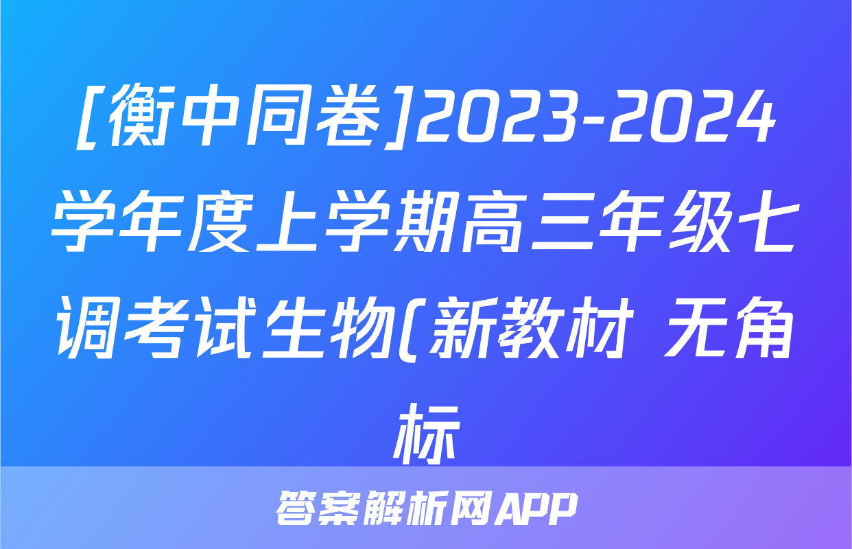 [衡中同卷]2023-2024学年度上学期高三年级七调考试生物(新教材 无角标)答案正在持续更新,目前2026天舟高考答案网为大家整理了相关试题及答案,供大家查缺补漏,高效提升成绩。