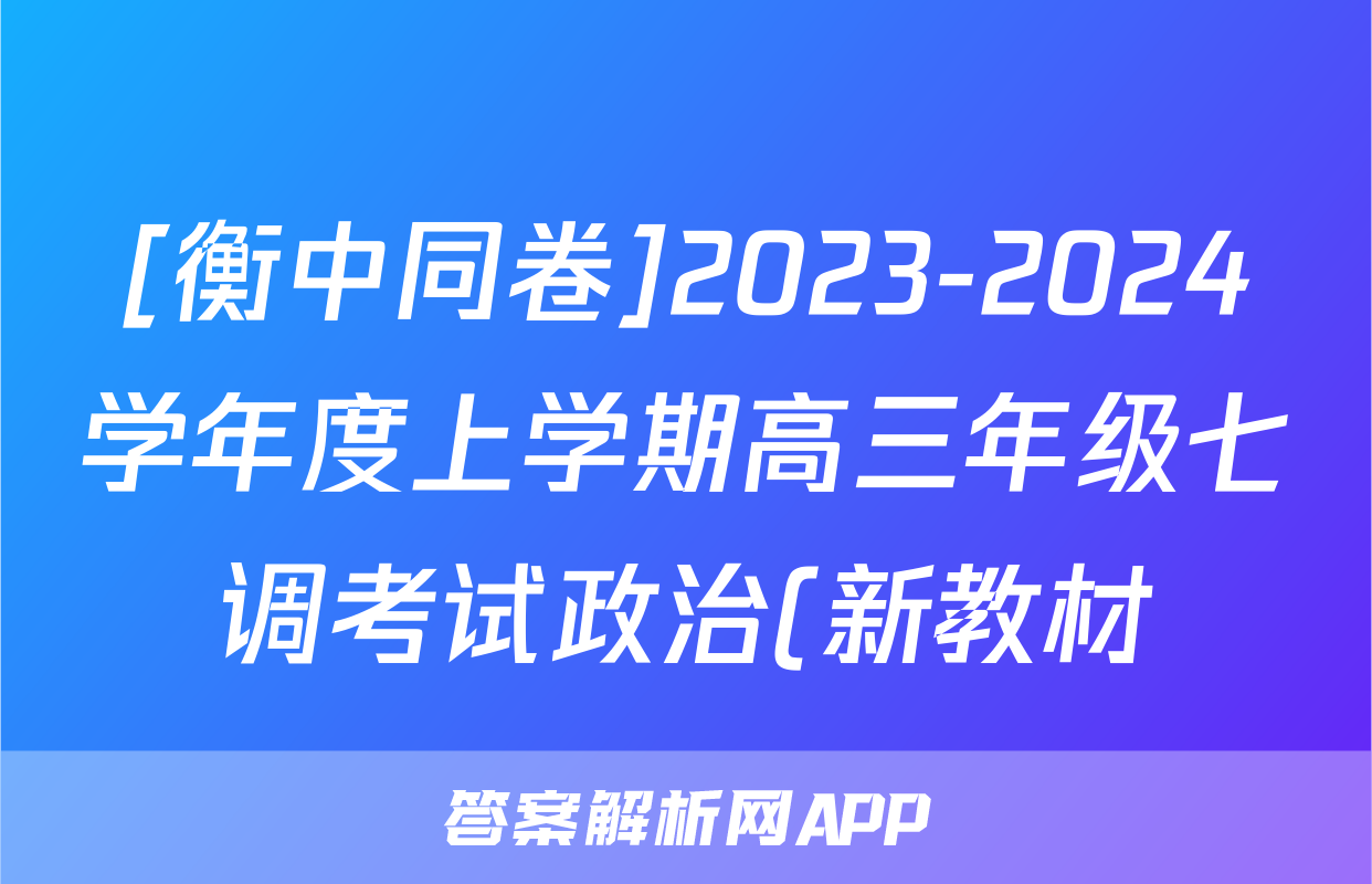 [衡中同卷]2023-2024学年度上学期高三年级七调考试政治(新教材)答案正在持续更新,目前2026天舟高考答案网为大家整理了相关试题及答案,供大家查缺补漏,高效提升成绩。