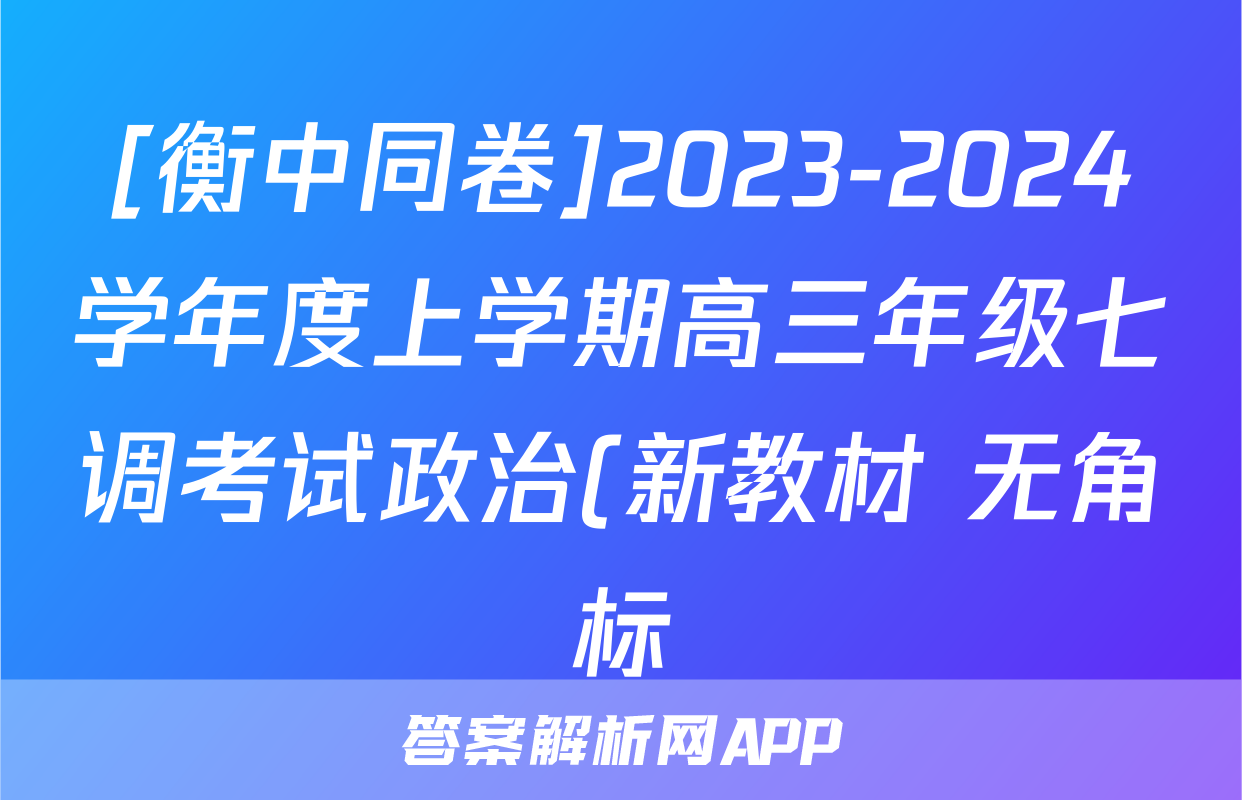 [衡中同卷]2023-2024学年度上学期高三年级七调考试政治(新教材 无角标)试题正在持续更新,目前2026天舟高考答案网为大家整理了相关试题及答案,供大家查缺补漏,高效提升成绩。