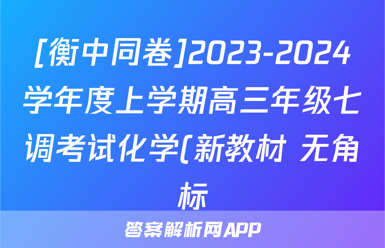 [衡中同卷]2023-2024学年度上学期高三年级七调考试化学(新教材 无角标)答案正在持续更新,目前2026天舟高考答案网为大家整理了相关试题及答案,供大家查缺补漏,高效提升成绩。