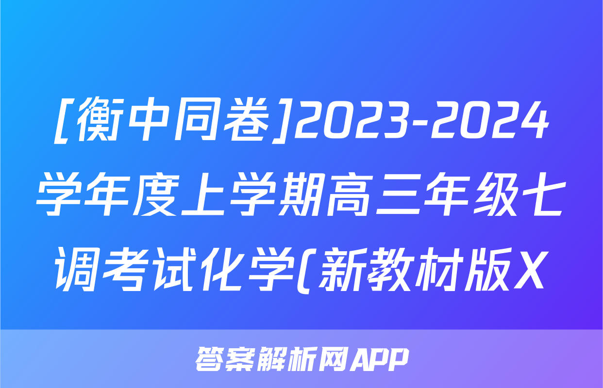 [衡中同卷]2023-2024学年度上学期高三年级七调考试化学(新教材版X)试题正在持续更新,目前2026天舟高考答案网为大家整理了相关试题及答案,供大家查缺补漏,高效提升成绩。