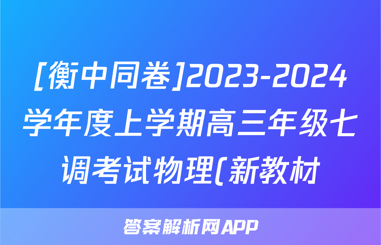 [衡中同卷]2023-2024学年度上学期高三年级七调考试物理(新教材)试题正在持续更新,目前2026天舟高考答案网为大家整理了相关试题及答案,供大家查缺补漏,高效提升成绩。