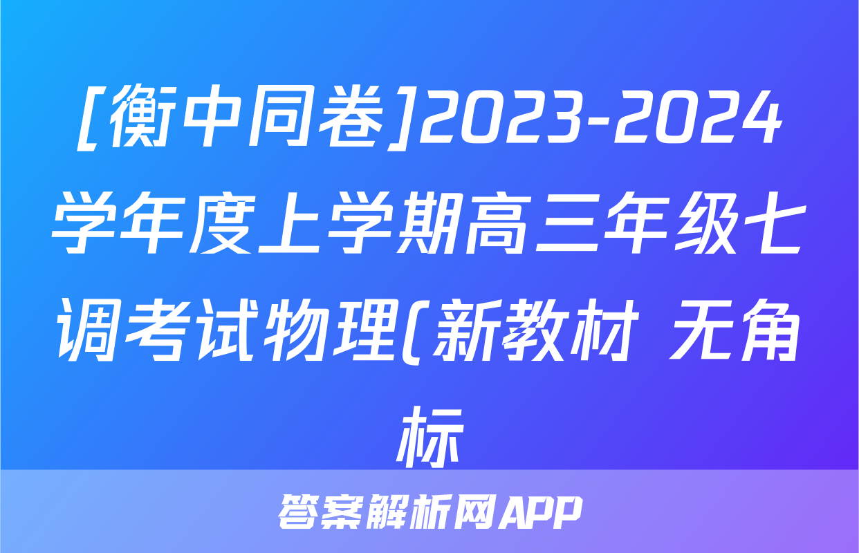 [衡中同卷]2023-2024学年度上学期高三年级七调考试物理(新教材 无角标)答案正在持续更新,目前2026天舟高考答案网为大家整理了相关试题及答案,供大家查缺补漏,高效提升成绩。