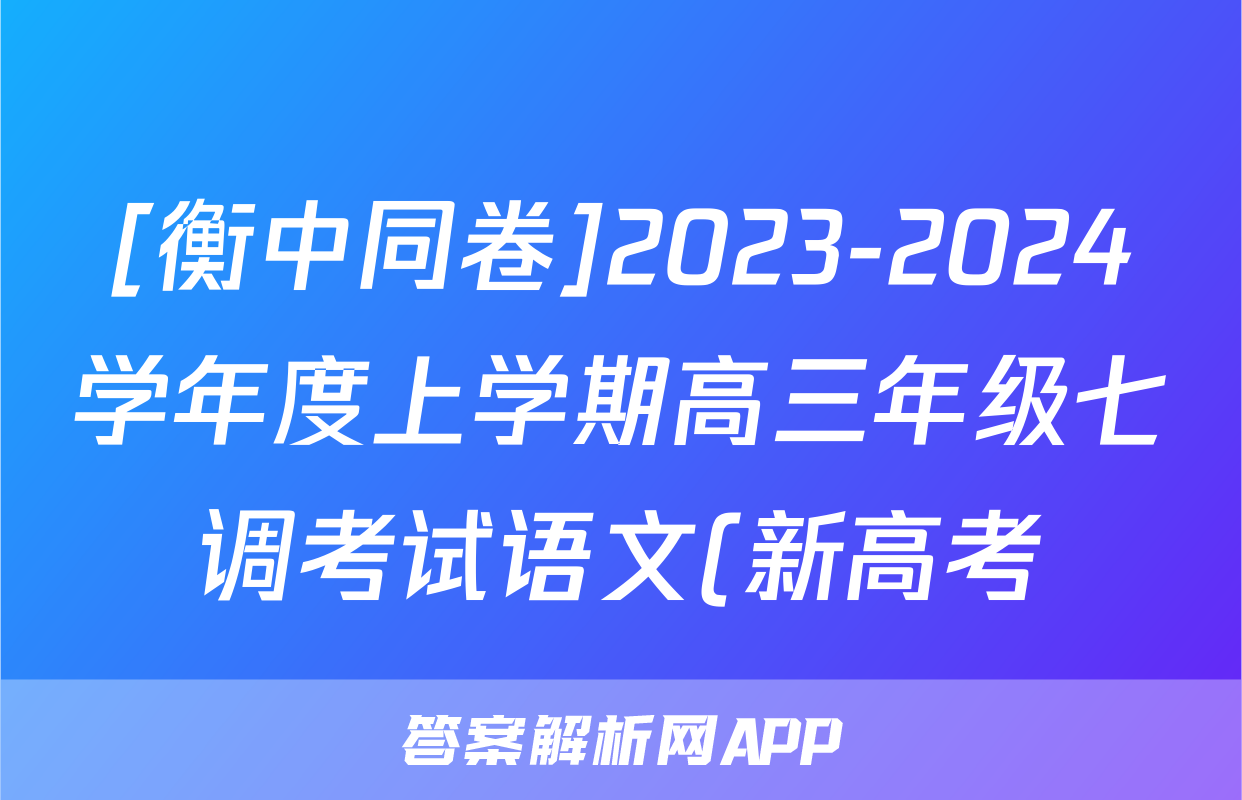 [衡中同卷]2023-2024学年度上学期高三年级七调考试语文(新高考)试题正在持续更新,目前2026天舟高考答案网为大家整理了相关试题及答案,供大家查缺补漏,高效提升成绩。