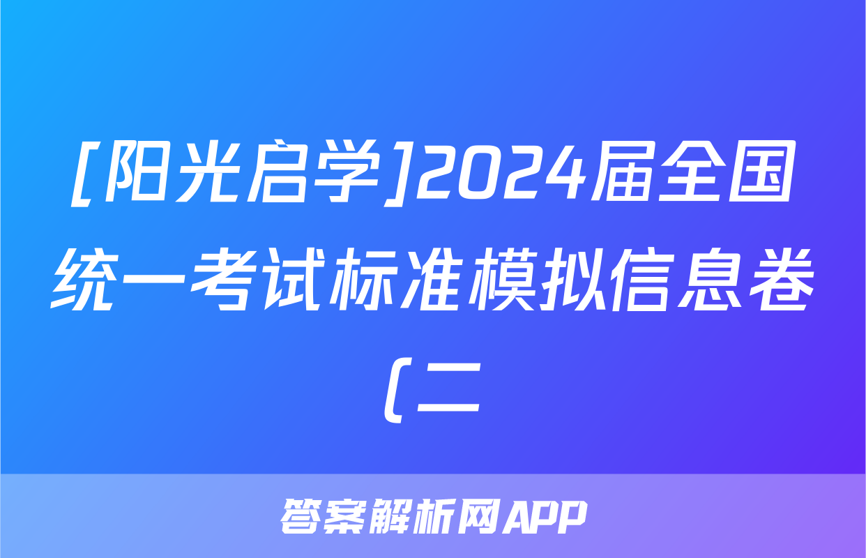 [阳光启学]2024届全国统一考试标准模拟信息卷(二)2英语LL试题正在持续更新,目前2026天舟高考答案网为大家整理了相关试题及答案,供大家查缺补漏,高效提升成绩。