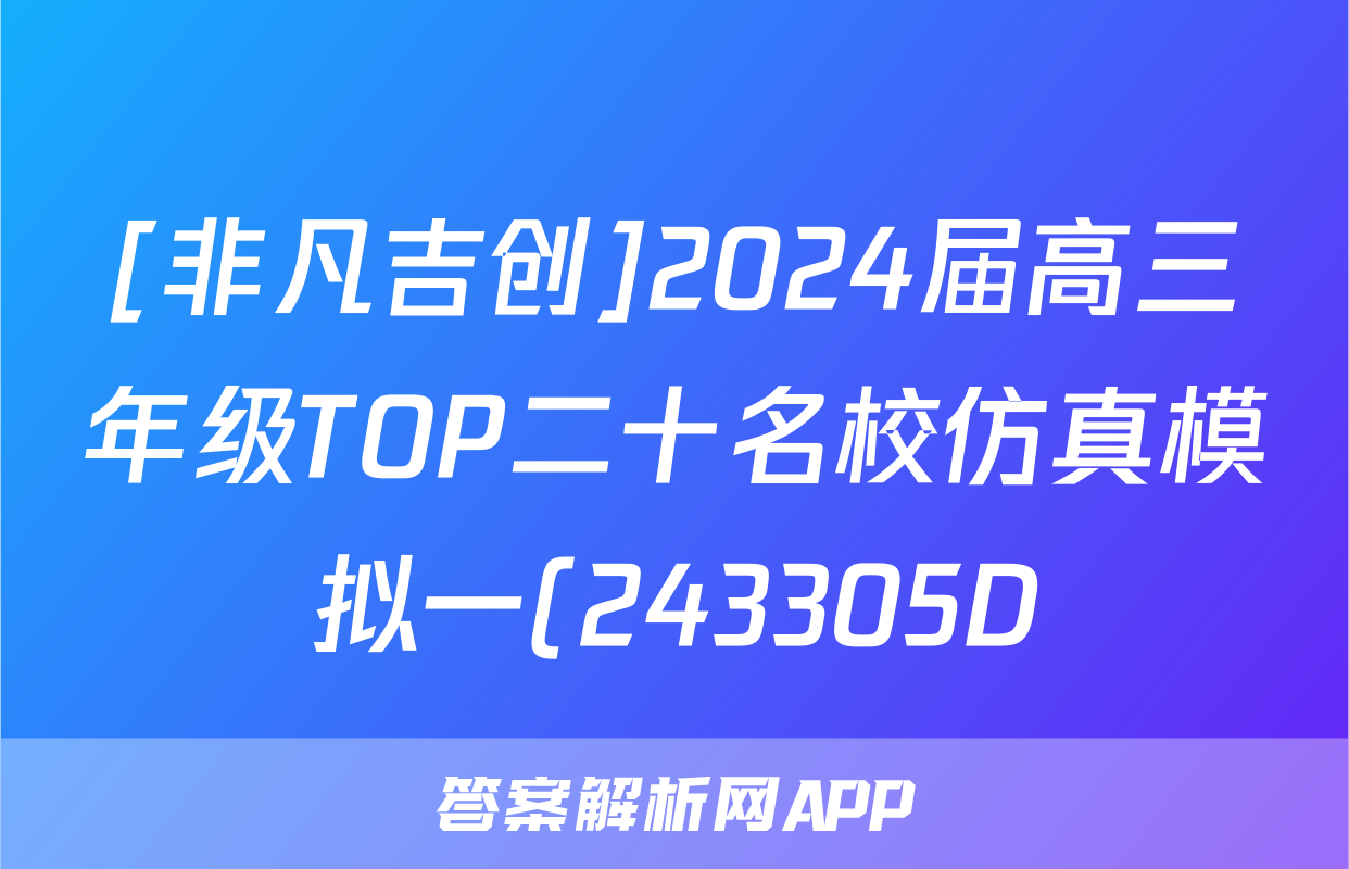 [非凡吉创]2024届高三年级TOP二十名校仿真模拟一(243305D)地理试题正在持续更新,目前2026天舟高考答案网为大家整理了相关试题及答案,供大家查缺补漏,高效提升成绩。