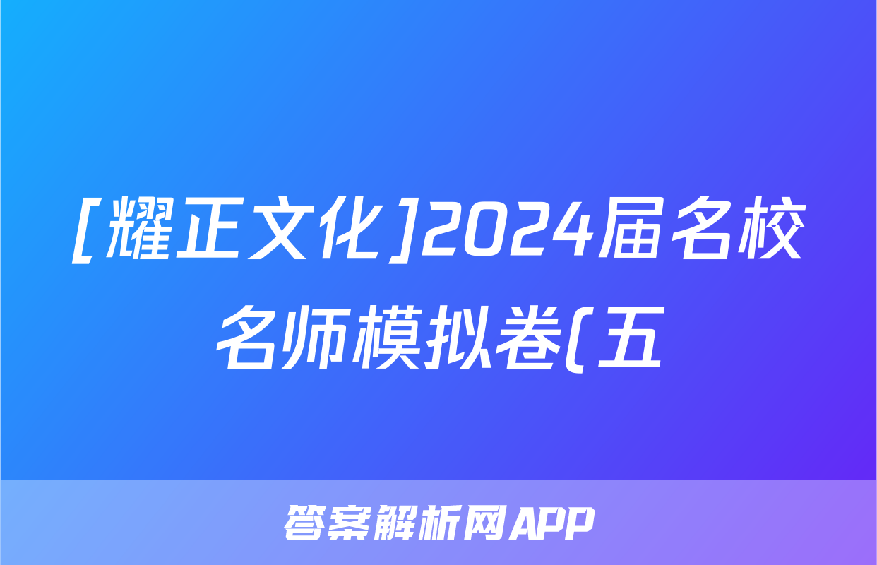 [耀正文化]2024届名校名师模拟卷(五)5英语试题正在持续更新,目前2026天舟高考答案网为大家整理了相关试题及答案,供大家查缺补漏,高效提升成绩。