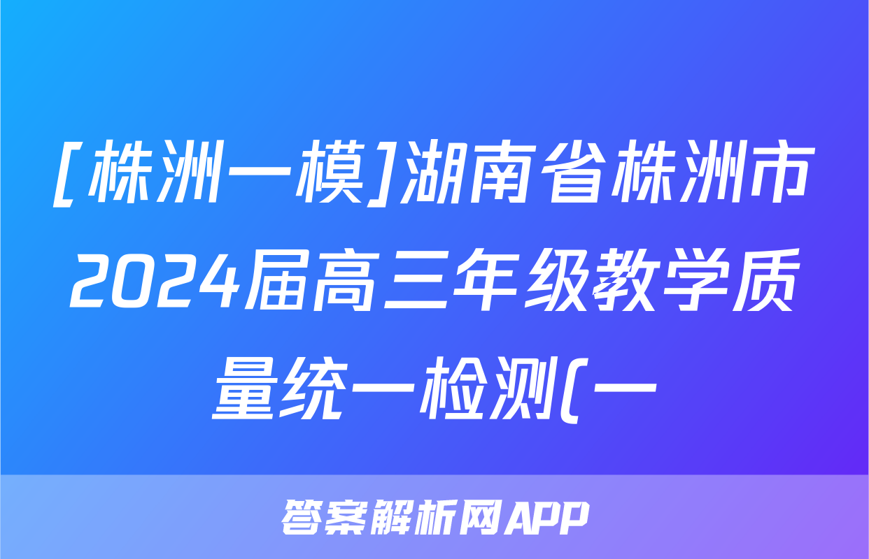 [株洲一模]湖南省株洲市2024届高三年级教学质量统一检测(一)政治试题正在持续更新,目前2026天舟高考答案网为大家整理了相关试题及答案,供大家查缺补漏,高效提升成绩。