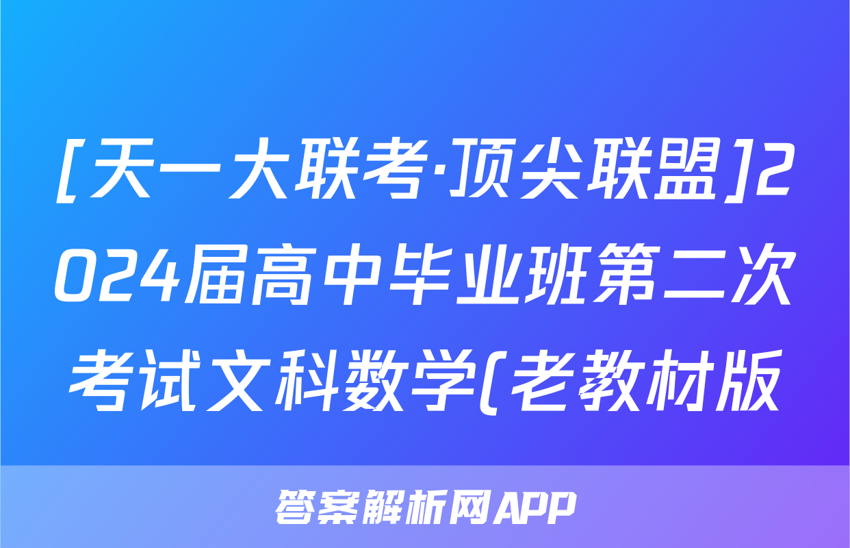 [天一大联考·顶尖联盟]2024届高中毕业班第二次考试文科数学(老教材版)答案正在持续更新,目前2026天舟高考答案网为大家整理了相关试题及答案,供大家查缺补漏,高效提升成绩。