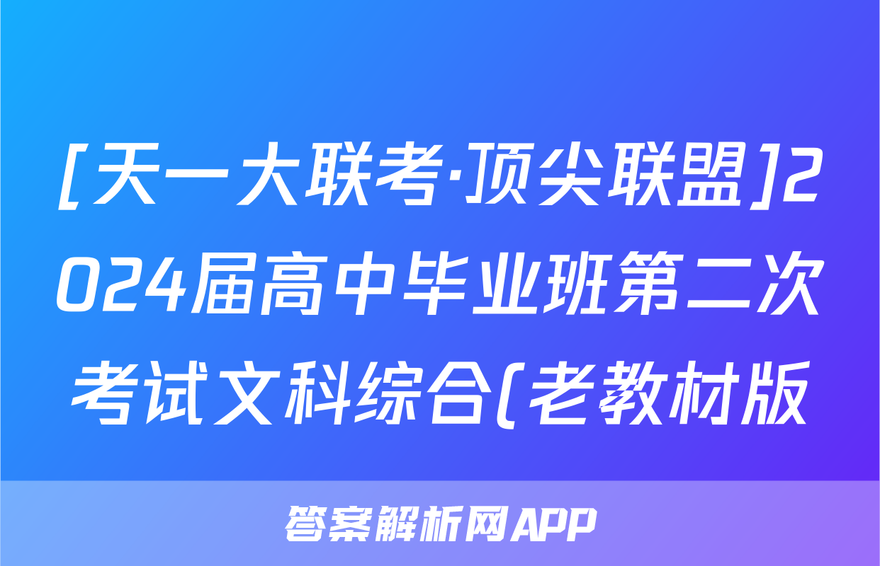 [天一大联考·顶尖联盟]2024届高中毕业班第二次考试文科综合(老教材版)答案正在持续更新,目前2026天舟高考答案网为大家整理了相关试题及答案,供大家查缺补漏,高效提升成绩。