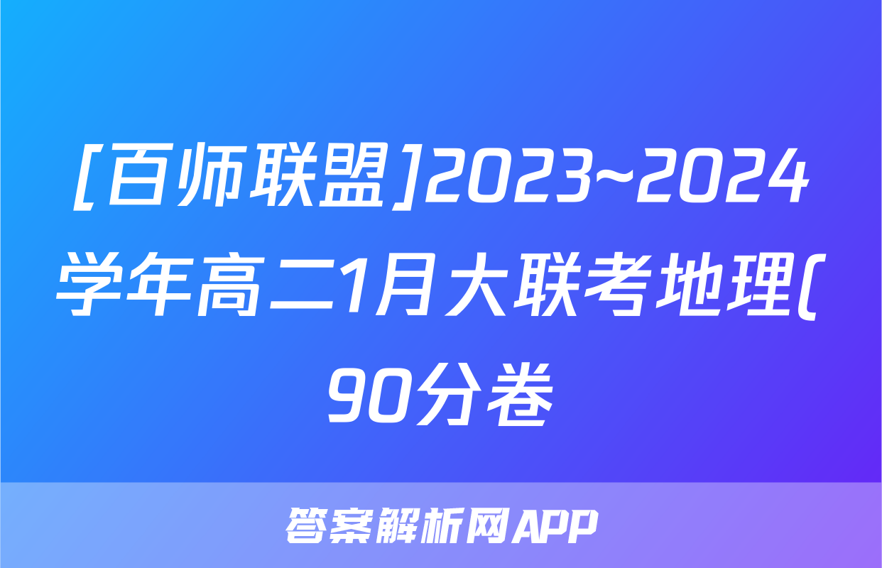 [百师联盟]2023~2024学年高二1月大联考地理(90分卷)答案正在持续更新,目前2026天舟高考答案网为大家整理了相关试题及答案,供大家查缺补漏,高效提升成绩。