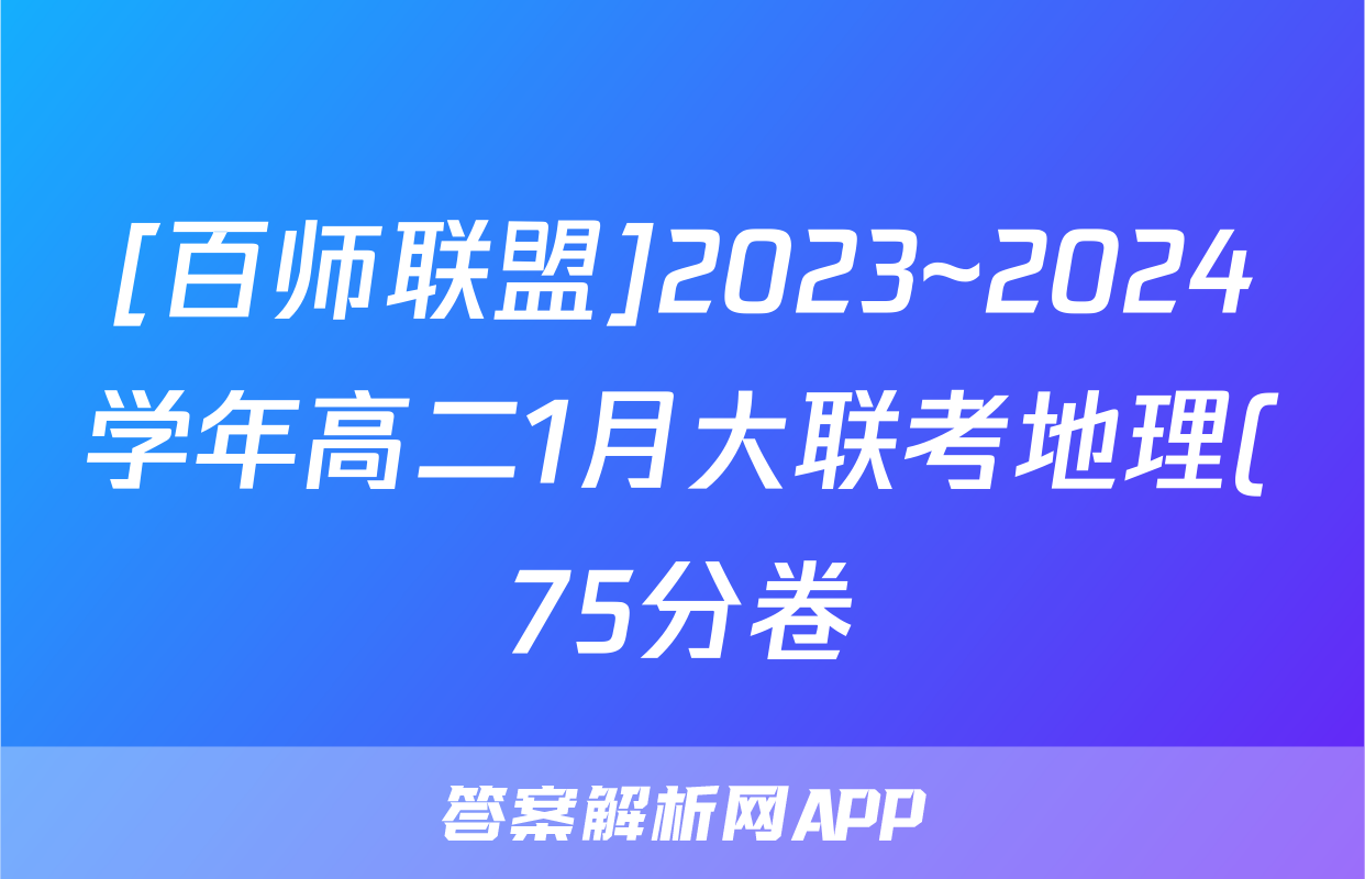 [百师联盟]2023~2024学年高二1月大联考地理(75分卷)试题正在持续更新,目前2026天舟高考答案网为大家整理了相关试题及答案,供大家查缺补漏,高效提升成绩。