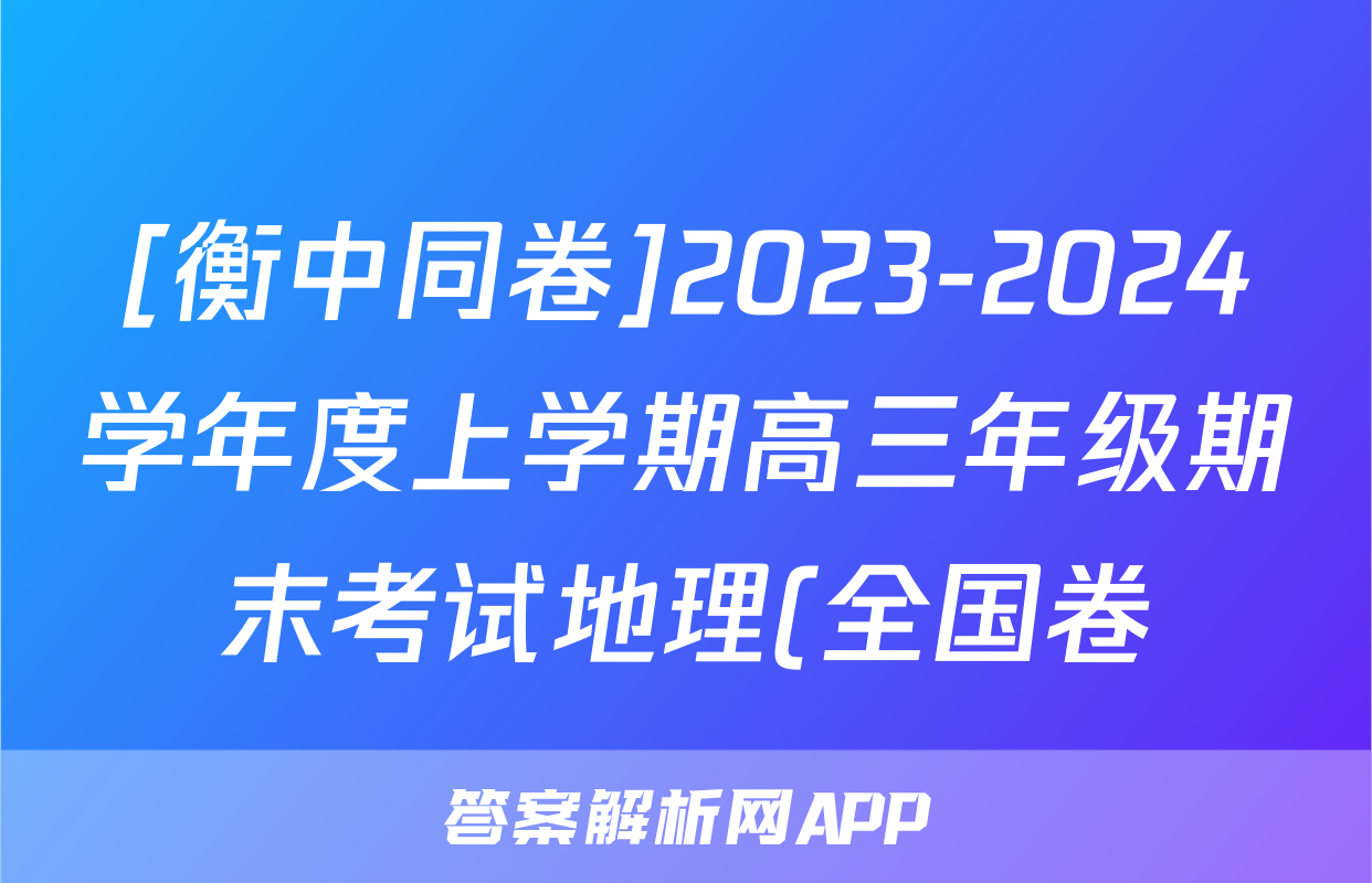 [衡中同卷]2023-2024学年度上学期高三年级期末考试地理(全国卷)试题正在持续更新,目前2026天舟高考答案网为大家整理了相关试题及答案,供大家查缺补漏,高效提升成绩。