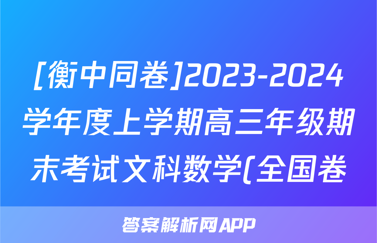 [衡中同卷]2023-2024学年度上学期高三年级期末考试文科数学(全国卷)答案正在持续更新,目前2026天舟高考答案网为大家整理了相关试题及答案,供大家查缺补漏,高效提升成绩。