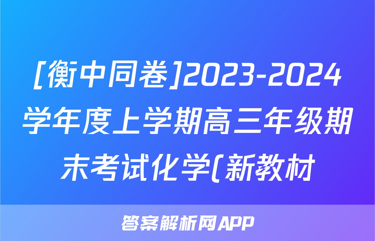 [衡中同卷]2023-2024学年度上学期高三年级期末考试化学(新教材)试题正在持续更新,目前2026天舟高考答案网为大家整理了相关试题及答案,供大家查缺补漏,高效提升成绩。